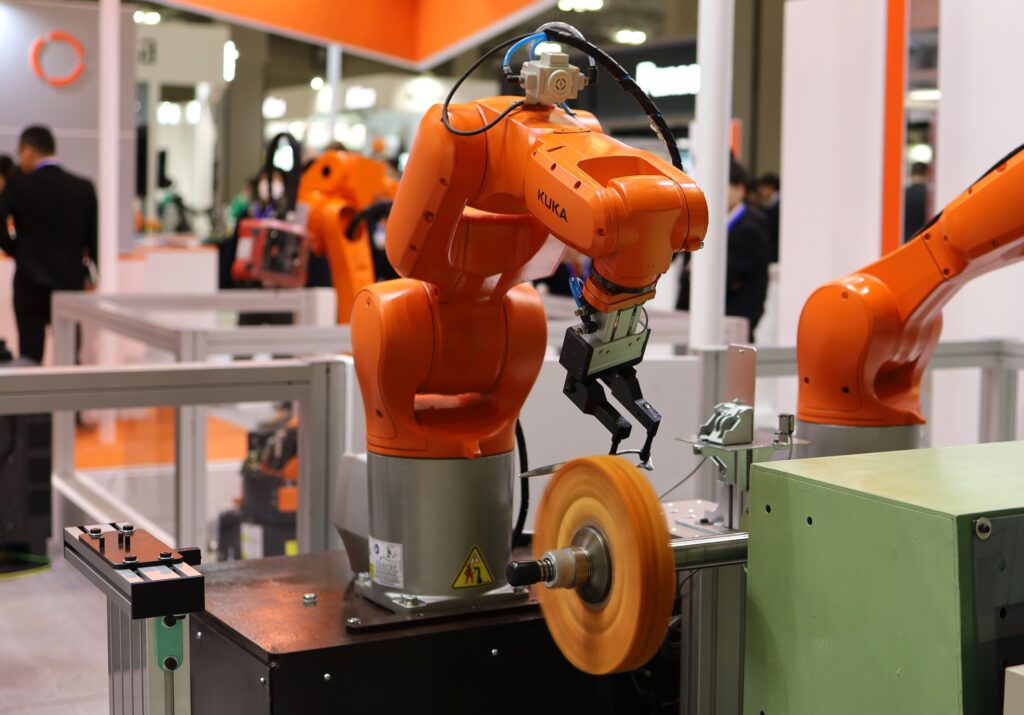 弊社は産業用ロボットメーカーKUKA Japan様ブース内にて、ロボット研磨システムの展示を行いました。