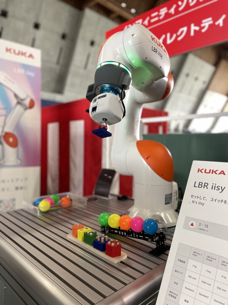 ブースでは、KUKAの新型協働ロボットLBR iisyと7軸協働ロボットLBR iiwaを展示。