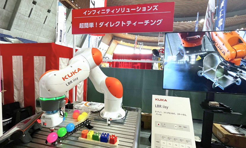 ブースでは、KUKAの新型協働ロボットLBR iisyと7軸協働ロボットLBR iiwaを展示。
