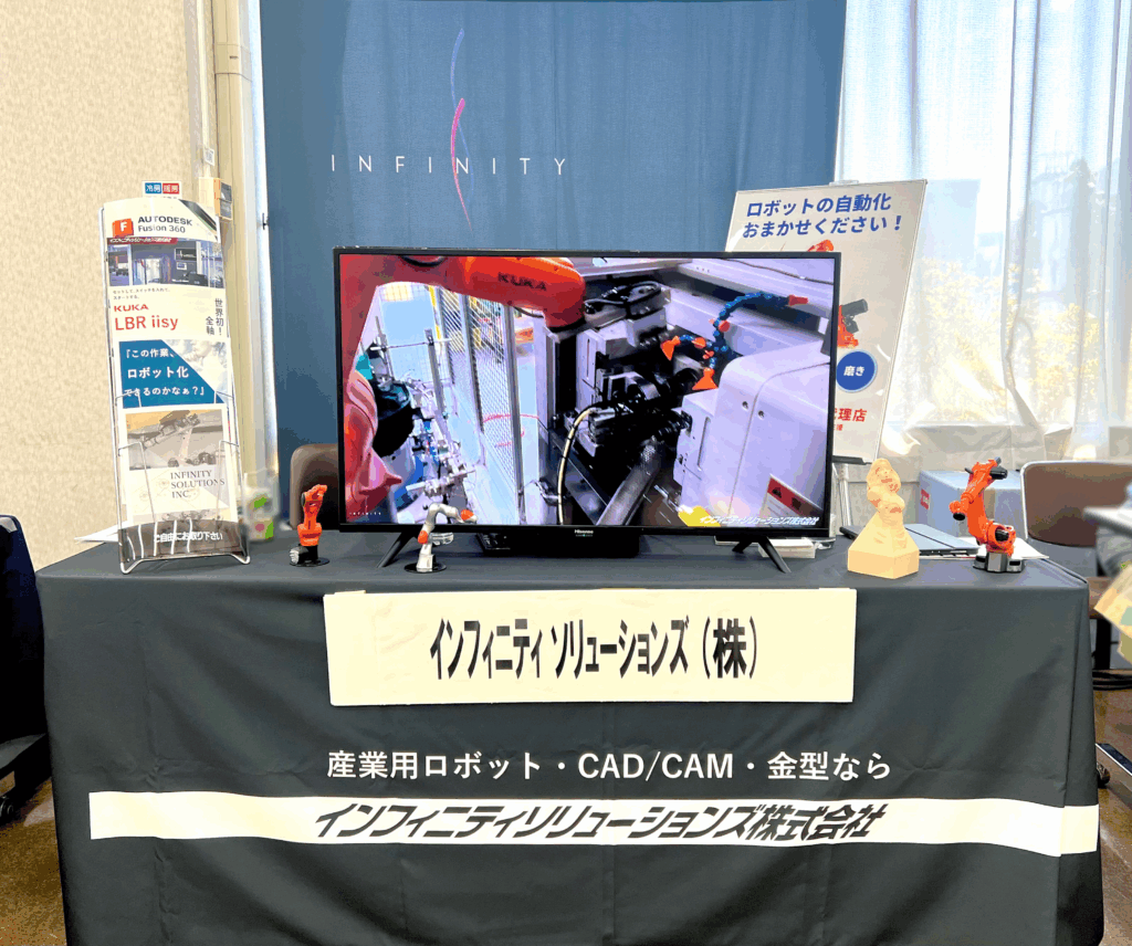 ブースでは、弊社の取り扱いKUKAロボットの動画展示を行い、