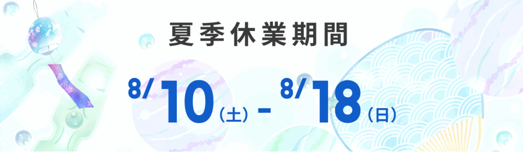 その他新着情報 夏季休業のお知らせ 休業期間・営業開始日のご案内 平素は格別のお引き立てを賜り厚く御礼申し上げます。 誠に勝手ながら、弊社では以下の期間を夏季休業とさせていただきます。 8月19日(月)より通常通り営業いたします。 休業期間内にいただいたお問い合わせにつきましては、休業日明け以降より順次対応させていただきます。 皆様にはご迷惑をおかけいたしますが、ご了承の程何卒よろしくお願い申し上げます。 インフィニティソリューションズ株式会社
