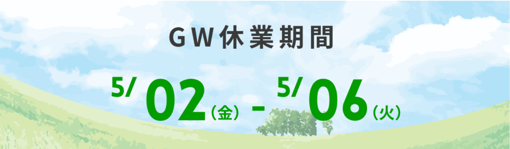 その他新着情報 ゴールデンウィーク休業のお知らせ 休業期間・営業開始日のご案内 平素は格別のお引き立てを賜り、厚く御礼申し上げます。 誠に勝手ながら、弊社では以下の期間を休業とさせていただきます。 5月7日(水)より通常通り営業いたします。 休業期間内にいただいたお問い合わせにつきましては、休業日明け以降順次対応させていただきます。 皆様にはご迷惑をおかけいたしますが、ご了承の程何卒よろしくお願い申し上げます。 インフィニティソリューションズ株式会社